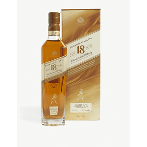 Johnnie Walker Aged 18 Years has rich sweet fruit aromas along with toffee caramel, vanilla and a hint of smoke. It's warming and sweet on the palate with dark fruits, malty cereal, smooth creamy vanilla, fragrant almonds and tangerines, and a gentle smoke developing. A lingering finish brings notes of dark chocolate, caramelised citrus peel and very light smoke.